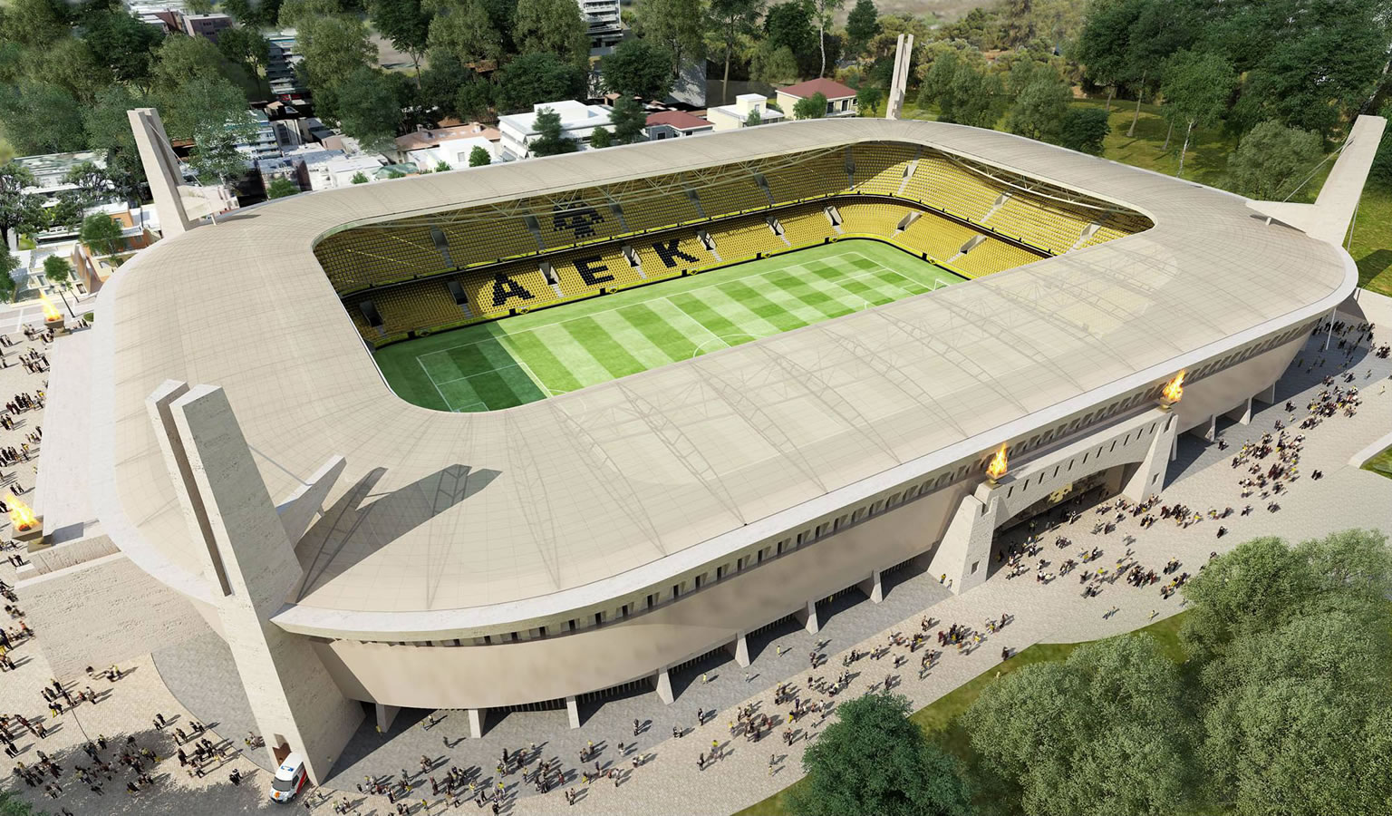 We are thrilled to see that AEK FC Stadium has reached a major milestone with the completion of the stadium canopy and PVC membrane covering 13.500 m² divided into 54 parts.